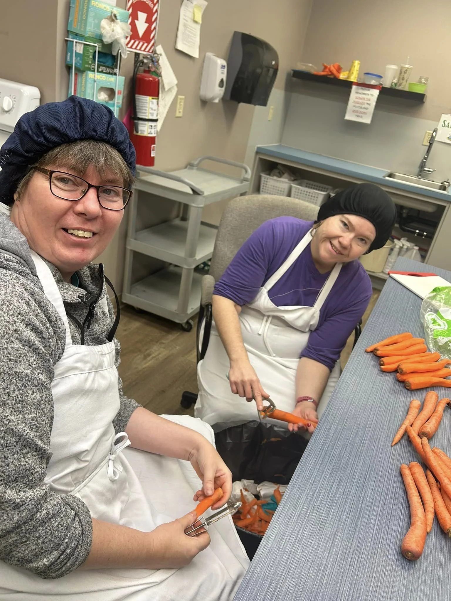 Our commercial kitchen is fully licensed by Sask Health. Through the kitchen we have the Brown Bag Lunch program where we sell, cook, and deliver lunches every week to the public. We also do fresh baking every week and sell dainty trays at Christmas time.